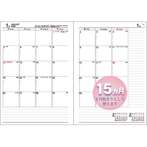 2026 マンスダイアリー A5 D−3