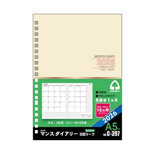 2026 日記リーフ マンス A5 20穴 C−397 1冊 A09H-0979