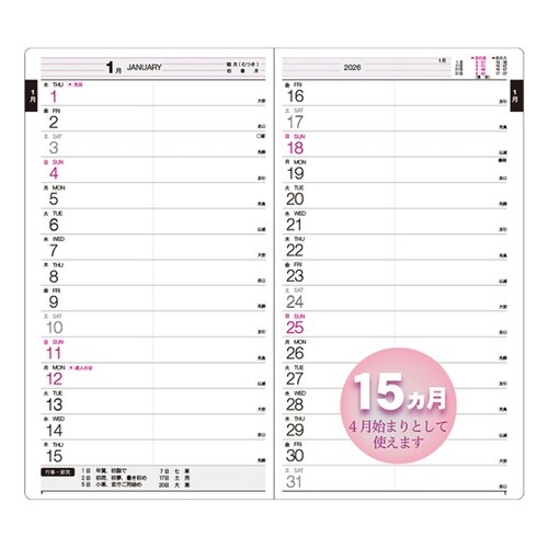 独特のスタイルが好評の見開き1ヶ月ダイアリーです。 |