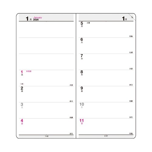 2026 ウィークプログラム 紙幣サイズ D−26 1冊 A09H-0991