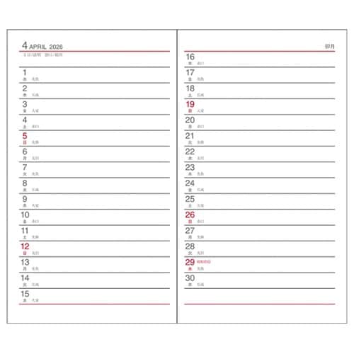 数え方一覧・贈答のエチケット・人生の記念日一覧・暦について・いざという時の為の地震マニュアル・印紙税額一覧表・度量衡換算表・用紙サイズ一覧・年齢早見表・住所録・緊急連絡先メモ・鉛筆。