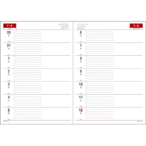 色:ブラック。 | 規格サイズ:B5。 | 表紙素材:PVC。 | ページ数:224。 | 始まり曜日:月曜日。 | 始まり月:12月。 | 主レイア…
