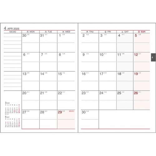 色:ブラック。 | 規格サイズ:A6。 | 表紙素材:PVC。 | ページ数:160。 | 始まり曜日:月曜日。 | 始まり月:12月。 | 主レイア…