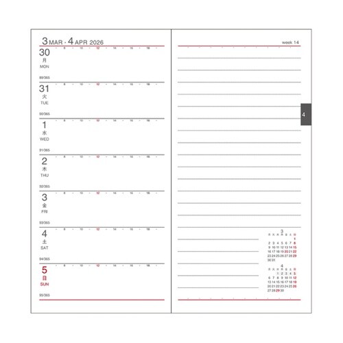 ダイゴー 2026 アポイント 1W+横罫 ブラック E8442 1冊 A09H-1064