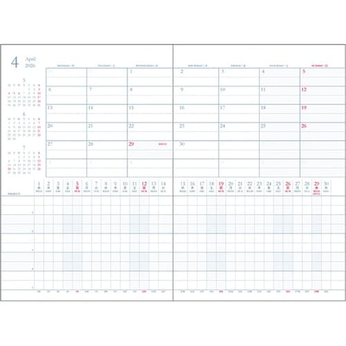 プロジェクトを作業・項目ごとに記入することができます。各工程の期間や進捗が把握しやすく、工程管理や生産管理に向いています。 |