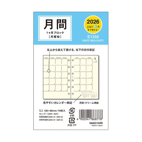 ビジネスからプライベートまで、しっかりサポートできるシステム手帳リフィルです。 |
