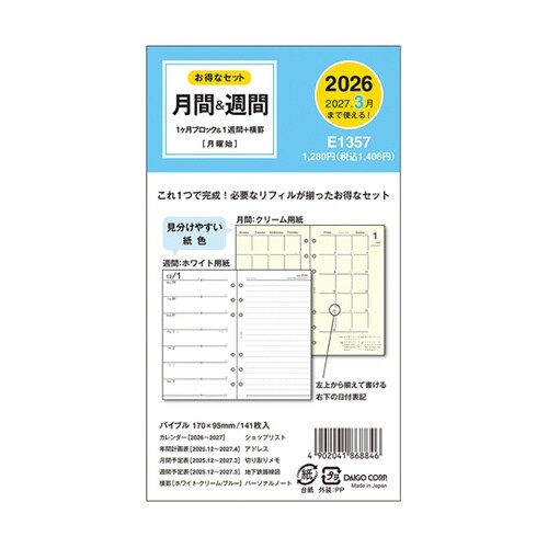 ビジネスからプライベートまで、しっかりサポートできるシステム手帳リフィルです。 |