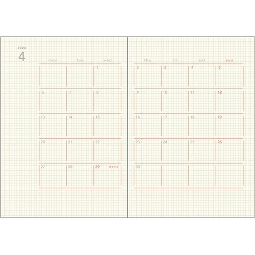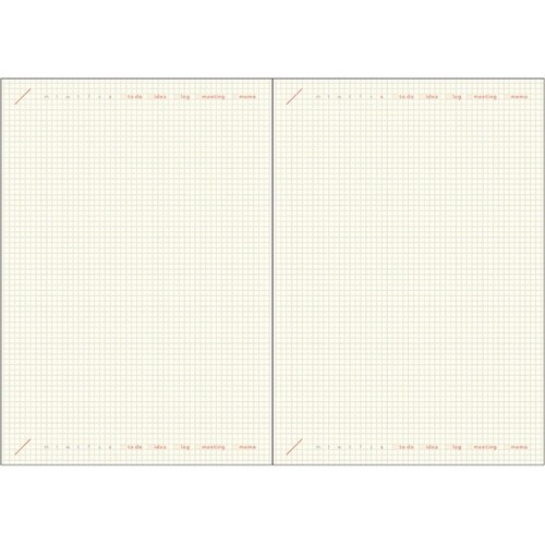 月間は余白がたっぷりで自由に使えます。ベースの2.5mm方眼は線をひいたり文頭を揃えるガイドにできます。フリーメモは必要な時に書きたい分だけ書けるフォーマット。