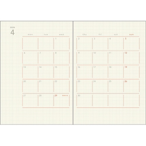 月間は余白がたっぷりで自由に使えます。ベースの2.5mm方眼は線をひいたり文頭を揃えるガイドにできます。フリーメモは必要な時に書きたい分だけ書けるフォーマット。