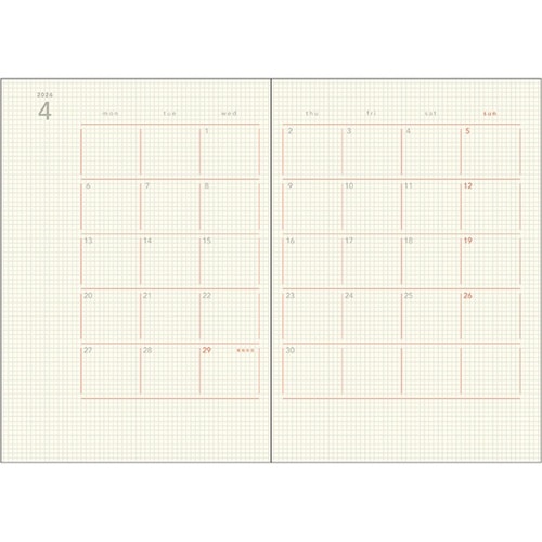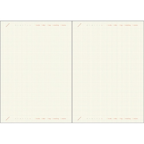 月間は余白がたっぷりで自由に使えます。ベースの2.5mm方眼は線をひいたり文頭を揃えるガイドにできます。フリーメモは必要な時に書きたい分だけ書けるフォーマット。