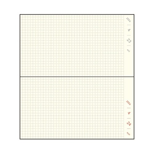日付と2.5mm方眼のみのシンプルなレイアウト。日付がななめに入っているので、タテヨコどちらでもつかえます。毎日のtodoやログなどを簡単に記入できるレイアウトです。