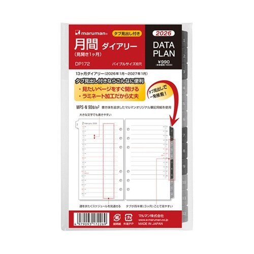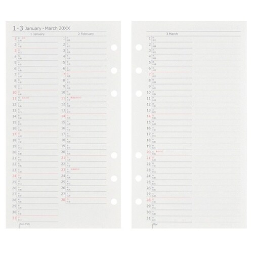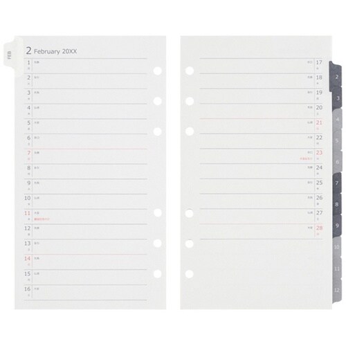 システム手帳に適したデータプラン”バイブルサイズ”シリーズ。月間ダイアリー見開き1ヶ月です。 |
