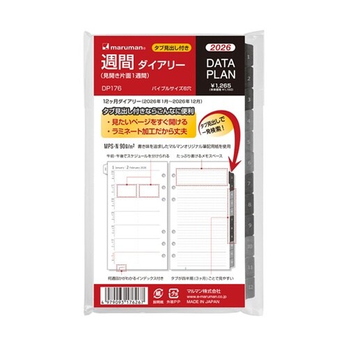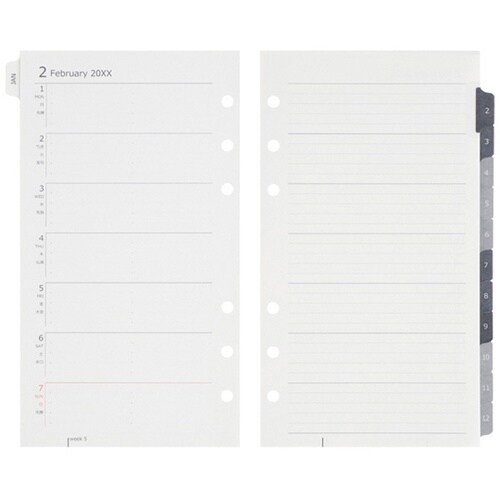 システム手帳に適したデータプラン”バイブルサイズ”シリーズ。週間ダイアリー見開き片面1週間です。 |