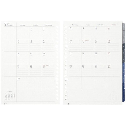 バインダーとの連携でオリジナルダイアリー編集が可能な”ルーズリーフダイアリー”1日の午前・午後のスケジュールが分けて記載できるダイアリーです。 |