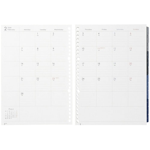 バインダーとの連携でオリジナルダイアリー編集が可能な”ルーズリーフダイアリー”1週間のスケジュール内容を記載できるダイアリーです。 |