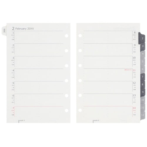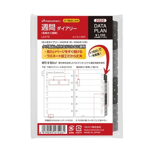 システム手帳に適したデータプラン”ミニサイズ”シリーズ。箇条書きに整理して書けるダイアリーです。 |