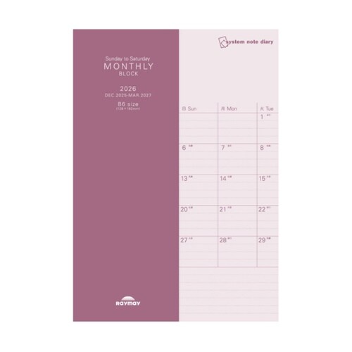 レイメイ藤井 26システムノートダイアリー ブロック日曜B6 RFR2685 1冊 A09H-1272