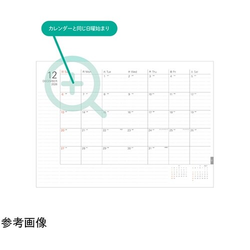 規格サイズ:B6。 | ページ数:40。 | 始まり曜日:日曜日。 | 始まり月:12月。 | 主レイアウト:1ヶ月ブロック見開き1ヶ月 。 | レイ…