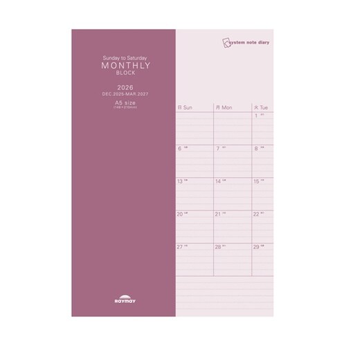 レイメイ藤井 26システムノートダイアリー ブロック日曜A5 RFR2686 1冊 A09H-1273