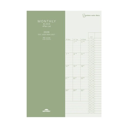 左に月間ブロック、右に4区分リスト式のレイアウト。 |