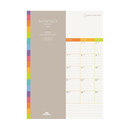 規格サイズ:A5。 | ページ数:40。 | 始まり曜日:月曜日。 | 始まり月:12月。 | 主レイアウト:1ヶ月ブロックカラー 見開き1ヶ月 。 …