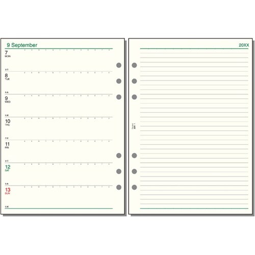 規格サイズ:A5。 | ページ数:140。 | 始まり曜日:月曜日。 | 始まり月:12月。 | 主レイアウト:片面1週間。 | レイアウト1:ウィー…
