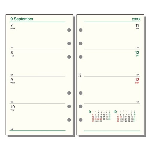 規格サイズ:バイブル。 | ページ数:140。 | 始まり曜日:月曜日。 | 始まり月:12月。 | 主レイアウト:見開き両面1週間 。 | レイアウ…