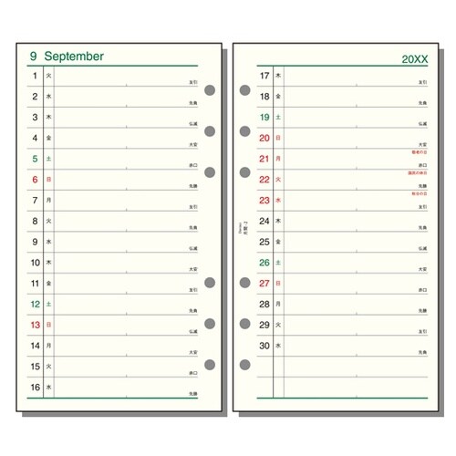 規格サイズ:バイブル。 | ページ数:34。 | 始まり月:12月。 | 主レイアウト:見開き両面1ヶ月リスト式。 | レイアウト1:マンスリー。 |…