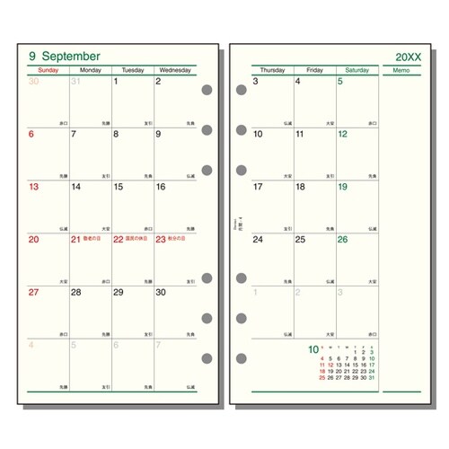 規格サイズ:バイブル。 | ページ数:34。 | 始まり曜日:日曜日。 | 始まり月:12月。 | 主レイアウト:見開き両面1ヶ月ブロック式。 | レ…