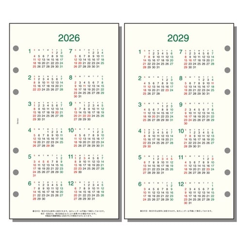 規格サイズ:バイブル。 | ページ数:1。 | 始まり曜日:日曜日。 | 始まり月:1月。 | 主レイアウト:4年分 2026ー2027年、1枚 20…