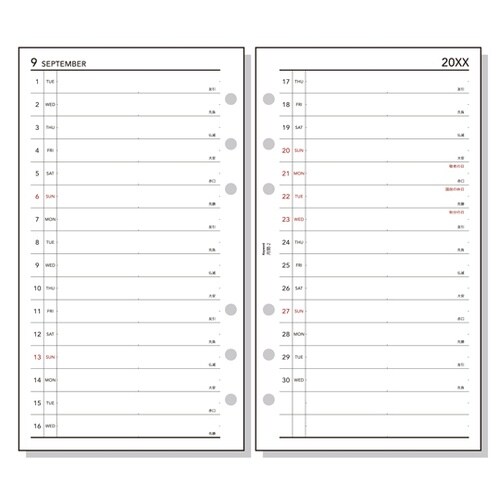 規格サイズ:バイブル。 | ページ数:34。 | 始まり月:12月。 | 主レイアウト:見開き両面1ヶ月リスト式。 | レイアウト1:マンスリー。 |…