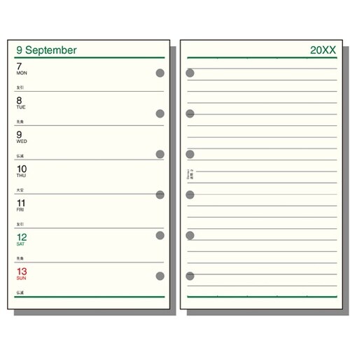 規格サイズ:ポケット。 | ページ数:140。 | 始まり曜日:月曜日。 | 始まり月:12月。 | 主レイアウト:片面1週間+片面横罫ノート。 | …