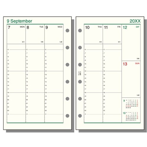 規格サイズ:ポケット。 | ページ数:140。 | 始まり曜日:月曜日。 | 始まり月:12月。 | 主レイアウト:見開き両面1週間。 | レイアウト…