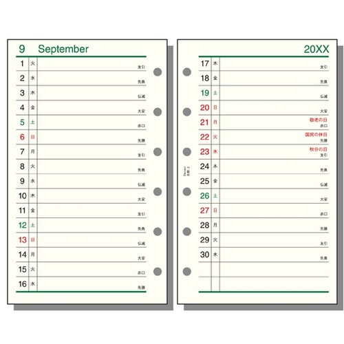 見開き両面1ヶ月リスト式。 |