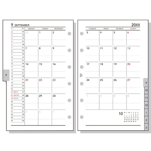規格サイズ:ポケット。 | ページ数:34。 | 始まり曜日:月曜日。 | 始まり月:12月。 | 主レイアウト:見開き両面1ヶ月ブロック式。 | レ…