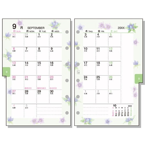 見たい月がすぐに探せるカラフルなインデックス付き。 |