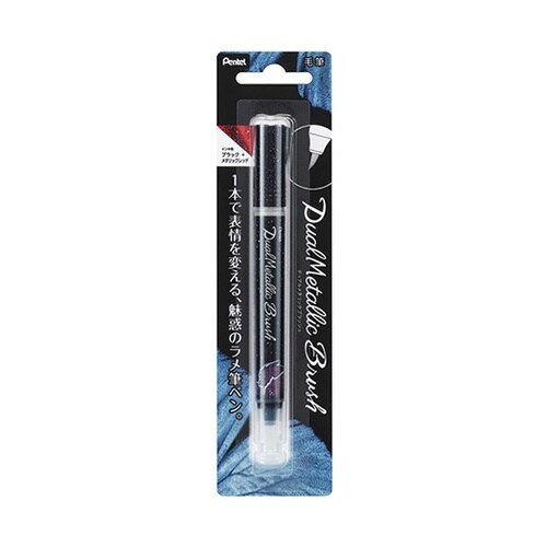 ぺんてる カラー筆ペン デュアルメタリックブラッシュ ブラック+メタリックレッド XGFH−DA 1本 A09H-1444