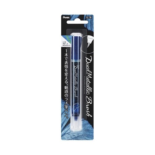 ぺんてる カラー筆ペン デュアルメタリックブラッシュ ブルー+メタリックグリーン XGFH−DC 1本 A09H-1445
