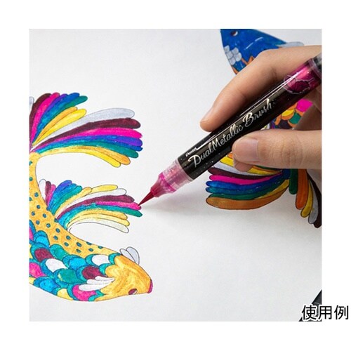 ぺんてる カラー筆ペン デュアルメタリックブラッシュ ピンク+メタリックピンク XGFH−DP 1本 A09H-1448