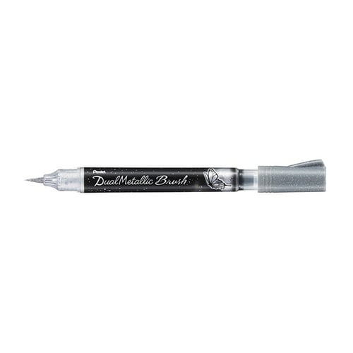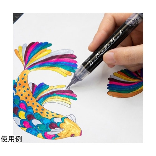 鮮やかな発色の「染料インキ」とたっぷり入った「ラメ顔料」で2種類の色が同時に見えます。毛筆のペン先なので細かい部分から広い面まで自由自在。1本で様々な表情を楽しめます。 |