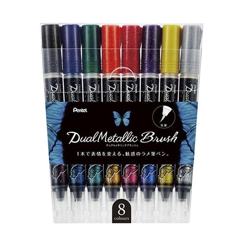 ぺんてる カラー筆ペン デュアルメタリックブラッシュ セット 8色 GFH−D8ST 1セット A09H-1452