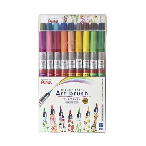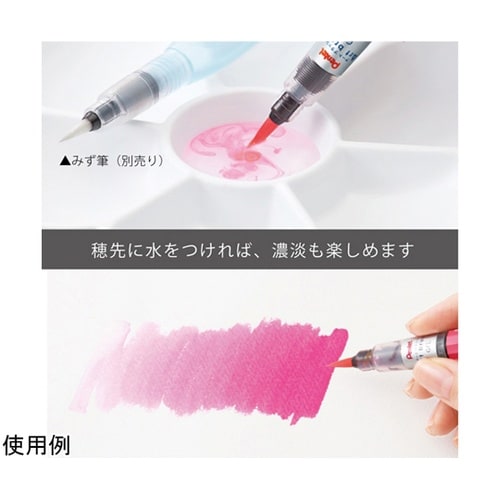 カラーインキと毛筆が一つになったカラー筆。毛筆特有の柔らかな線の表現が可能。みずみずしく鮮やかな発色で水彩表現ができ、文字を書くだけでなく水彩画やイラストにも適しています。 |