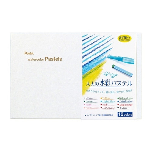 ぺんてる 水彩パス ヴィスタージュ 大人の水彩パステル セット 12色 みず筆付き GHW1−12 1セット A09H-1514