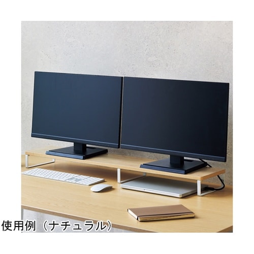 デュアルモニターに対応したロングサイズの机上台。幅545mm以下のフルサイズキーボードが収納できます。幅が広いので、モニターの2台置きやノートPCとモニターを接続して2画面操作ができます。 |