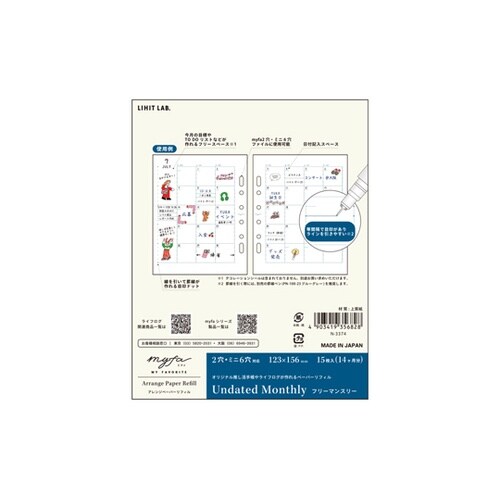 自由度が高く、カスタマイズしやすいペーパーリフィル。2穴・ミニ6穴に対応した厚口上質紙で書きやすいライフログリフィルです。 |
