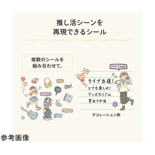 推し活ライフログをより楽しめるマスキングテープ素材のシール。5名のクリエイターとコラボレーションしたマスキングテープ素材のシールです。推し活やライフログノートのデコレーションにおすすめです。 |