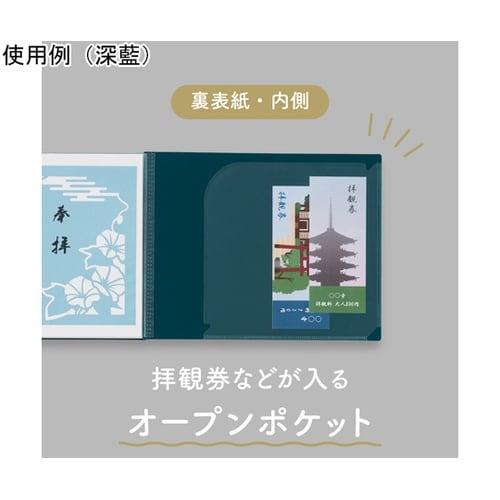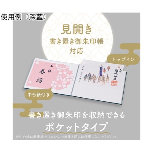 見開きサイズの切り絵・書き置き御朱印をきれいに収納できるポケットタイプの御朱印帳。中台紙を挟んで、おもて・うら両面に収納できるジャバラポケットタイプの御朱印帳です。