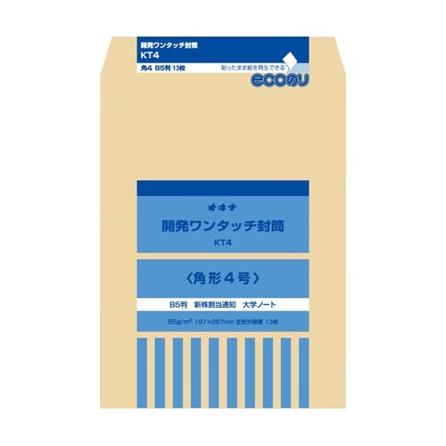 封緘に便利なワンタッチのり付。貼ったまま廃棄しても紙を再生できる「ecoのり」を採用した封筒です。 |
