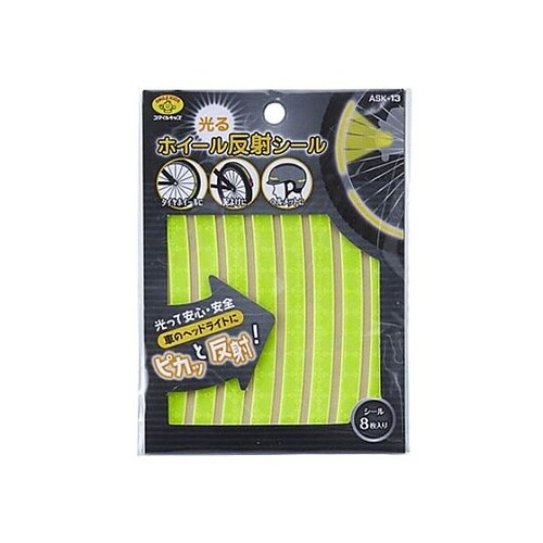 自転車の車輪リムに装着することにより、夜間、反射光で存在を示します。同封の1シート(8枚)分で24インチホイール半周に貼付することができます。 |