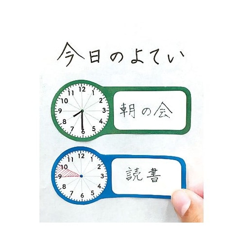 日常生活の中で時間の感覚を身につけよう時計を使わなくても手軽に時間の感覚が身につきます。このふせんを使って、手がかりとなる時間を教えてあげてください。「何時になったら何があるのか」の見通しに。 |
